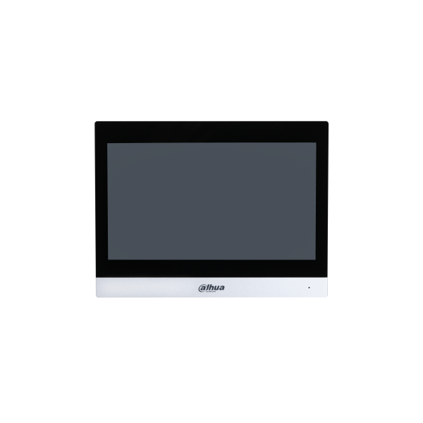 10-инчов цветен IP TFT капацитивен touch монитор за видеодомофонна система. Резолюция 1024х600. Подържа Intercom връзка. Вграден високоговорител и микрофон. Двупосочно аудио. Подържка на IP камери Dahua. Алармени фукции с 8x алармени входа, 1x алармен изход. WiFi IEEE 8203.11b/g/n, Ethernet RJ-45 порт 10/100Mps. 1x RS485, 6x безжични зони за детектори Dahua 433MHz. Слот за MicroSD карта до 32GB. Протоколи: SIP2.0, VT, TCP/IP, компресия H.264/G.711, PCM. Захранване DC12V/7W; POE 802.3af. Работна темп.: -10~55ºC. Метален корпус. Подходящ за повърхностен монтаж. Размери: 250 mm × 190 mm × 23.5 mm.