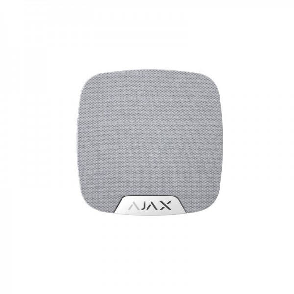 Безжична сирена. Регулируема сила на звука 81-105dB@1m. Регулируемо време за д-е 3-180s. Статус. Jeweller протокол за двупосочна криптирана комуникация с честота в диапазон 868~868.6MHz(25mW) и обхват до 1500m при пряка видимост. Размери: 75x76x27mm. Захранване: батерии 2x CR123A, живот до 5г. Степен на защита IP50. Работна температура:  -10°~40°C. Цвят: Черен, бял. EN50131, Security Grade 2, Environmental Class II.