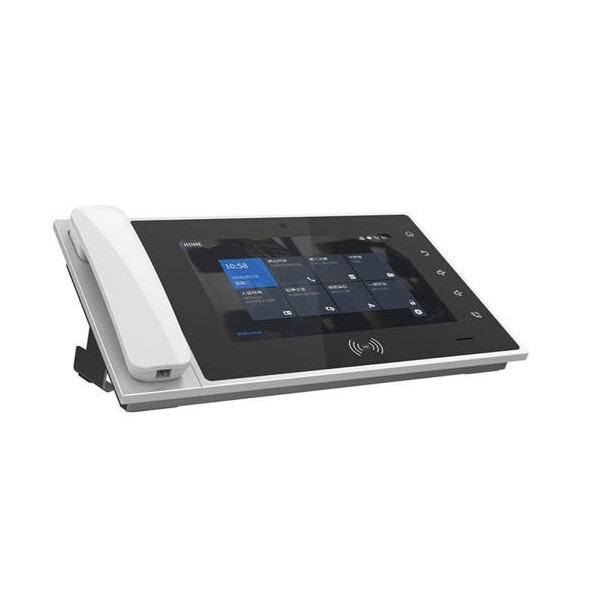 IP Станция за охрана със 7“ чувствителен на допир капацитивен дисплей. Може да осъществява обаждания към вътрешните тела и други станции за охрана. Приема обаждания от вътрешните тела, външните тела и други станции за охрана. Записва алармените събития. Може да отключва вратите. Показва броя на свързаните в системата домофонни тела. Може да прави мониторинг на камерите на външните тела и на свързаните камери в мрежата. Може да отключи всички врати с един бутон при извънредна ситуация. Продължителност на звънене 30 сек, продължителност на разговор 120 сек, продължителност на видеонаблюдение 30 сек. Работно напрежение DC 24V (не поддържа PoE), Консумация <200mA. Размери 305х210х31.8 мм. Работна температура -100C - +550C;