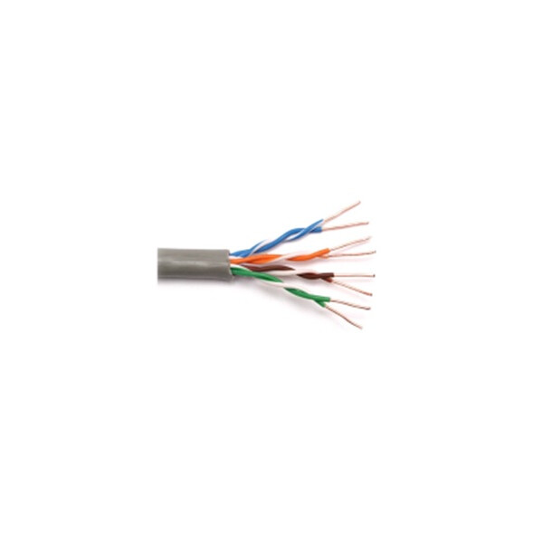 UTP (усускана двойка) кабел категория 5Е. AWG 25 - 4x2x25/1. Mедeн проводник с размер 0,45mm/0,16mm2, съпротивление ~182,6Ω/km. PVC изолация със СИВ цвят. Импеданс 100Ω. Затихване 64,5MHz – 17.1dB/100m; 4Mhz – 4.3dB/100m. Кашон 305м. Работна температура -30º~70ºC.