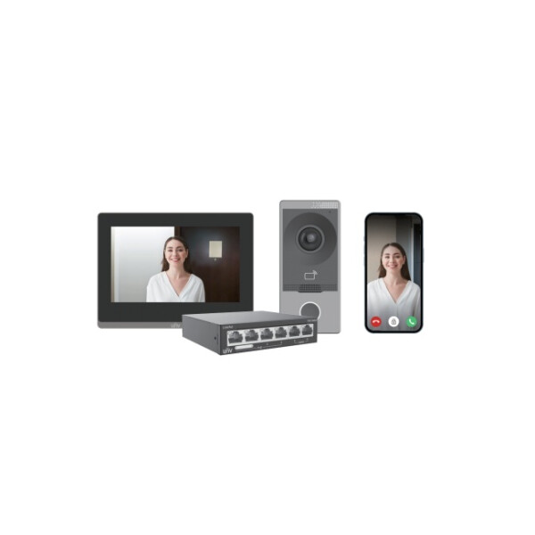 Комплект видеодомофони: Външно тяло: OEU-201S-HMK, Вътрешно тяло: OEI-372S-H-W и PoE суич NSW2020 (NSW2020-6T-POE-IN)
