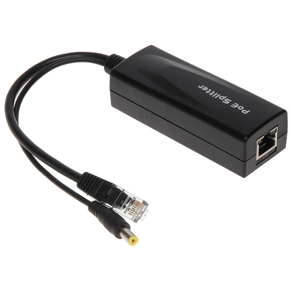 PoE сплитер 2x 10/100 Mbps: 1x PoE RJ45 in, 1x RJ45 plug на кабел. IEEE 802af/at. Захранващ конектор 1x 2.1/5.5 mm на кабел. Пропускателна способност 100 Mbps full duplex. Максимално разстояние на пренос 100м. Входящо напрежение 44-57V. Изходящ ток 1.6А. Изходящо напрежение 12V. Размери 94 x 35 x 27 mm. Работна температура 0-40 0C.