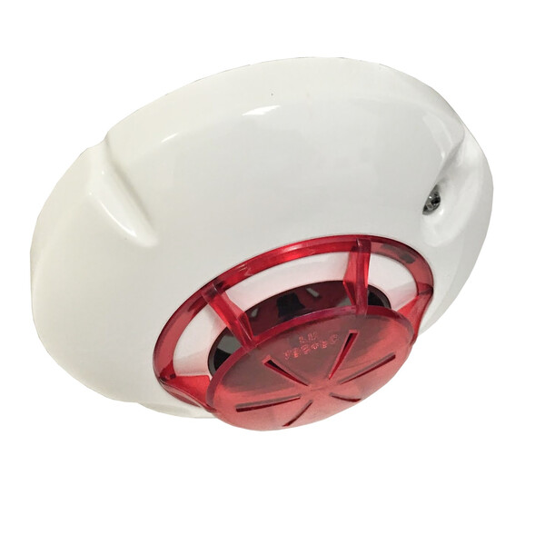 Конвенционален инфрачервен пламъчен детектор. 2 LED индикатора, изход за паралелен сигнализатор DC24V, материал ABS, цвят бял. Ъгъл на покритие: 45º. Работен диапазон 800~1000nm. Работно напрежение DC10~30V, standby ток 300µA. Максимално сечение на кабел 0.8-1.5mm². Работна температура: -10º~55ºC. Степен на защите IP43. Размер с основа ф106х53mm. EN стандарти: EN54-10.