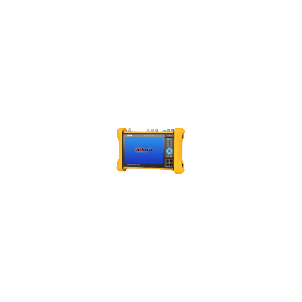 Мултифункционален Диагностичен Уред с вграден 7” LCD retina touch екран с FullHD резолюция 1920x1080. За диагностика на IP, CVI, AHD, TVI, SDI, CVBS камери, кабелни трасета и др. Android OS. Резолюция на екрана FullHD 1920х1080. Поддържа IP камери с резолюция до 12Mpix: Dahua(видео и промяна параметри), Onvif. Компресия: H.265/H.265/MJPEG/MPEG4. Управление по коаксиал на PTZ и OSD за HDCVI/TVI/AHD камери, смяна на режимите на 4в1 камери. Подържа работа с 12Mpix CVI. Вграден Wi-Fi 2.4GHz/5.8GHz. Вграден 3x RJ45 портa(1x PoE out). 1x DC12V/2A изход за захранване на камера, USB 5V/2A изход(зарядно). RS485/232 порт за PTZ контрол, Pelco P/D и др. 2x BNC вход, BNC изход, HDMI изход, HDMI вход. Аудио вход – аудио тест, Аудио изход. Тест на кабел Optical: VFL, TwistePair: TDR, cable search, Coax: TDR, Analog video generator. Network test: IP address scan, Ping test, bandwidth test, port flashing, DHCP server. Digital Multi-meter, Optical power meter, POE power info. Вграден LED лампа. Захранване: DC12V/2A. Вградена 7.4V литиево-йонна батерия с капацитет 3000mAh до 8 часа работа. Работна температура -10~55ºC. Размери: 270x160x46mm/2.1kg