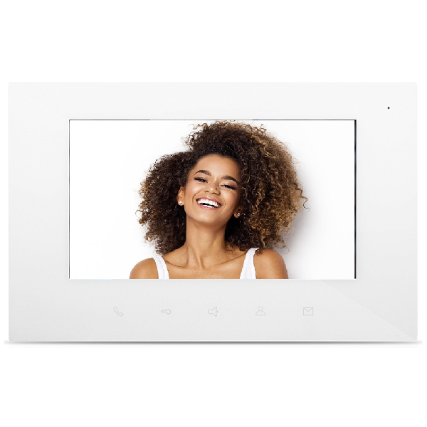 Вътрешно домофонно тяло с 7” TFT LCD дисплей с резолюция 800х480 Px; Захранване 24V – 30V; видео интерком, отключване; поддържа мониторинг в реално време от външното домофонно тяло; интерком функция в комплекса и/или апартамента; поддържа втори звънец; продължителност на звънене 30 сек. Разговор 120 сек. Видеонаблюдение 30 сек.; консумация < 200 mA; работна температура -100C - +550C; размери 220х140х24 мм.